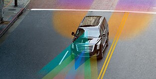 A higher perspective. Surround Vision provides you a bird's-eye view of the area immediately surrounding your vehicle when in low-speed Drive or Reverse. This view, projected on the Cadillac user experience screen, helps reduce blind spots and increase awareness when maneuvering in and out of tight spots.